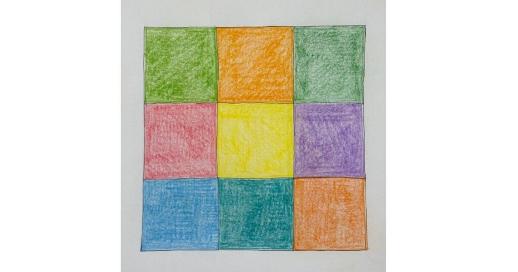 9つの四角(キューブ)を描き、自由に色を塗って頂き、あなたの内面を多角的に探求します。